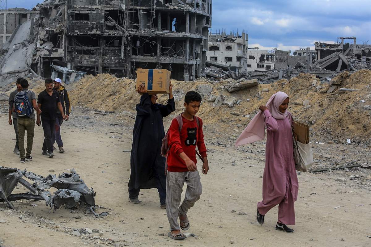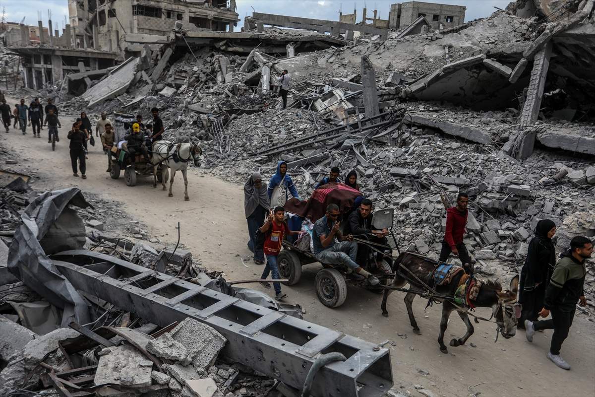 Raseljeni Palestinci vratili su se u Khan Younis na jugu Gaze nakon primirja, gdje su ih zatekle uništene zgrade i stambeni objekti, javlja Anadolija.
