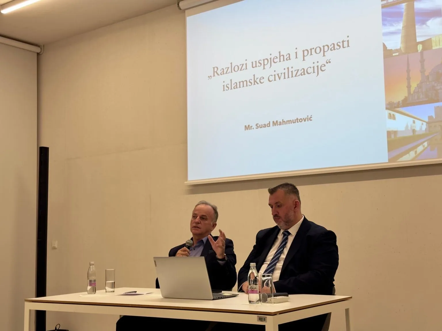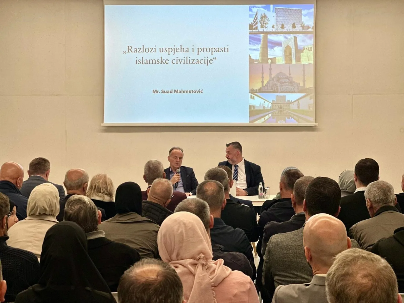 U svom izlaganju mr. Mahmutović je govorio o tri temeljna principa koji su, prema njegovom mišljenju, bili ključni za nastanak i razvoj islamske civilizacije – pravdi, obrazovanju i slobodi. Izdvojio je i tri uzroka njene dekadencije: – devastaciju porodice, devastaciju znanja i nepoštivanje autoriteta. Naglasio je da upravo povratak tim temeljnim vrijednostima može predstavljati put preporoda muslimanskih društava u savremenom dobu.