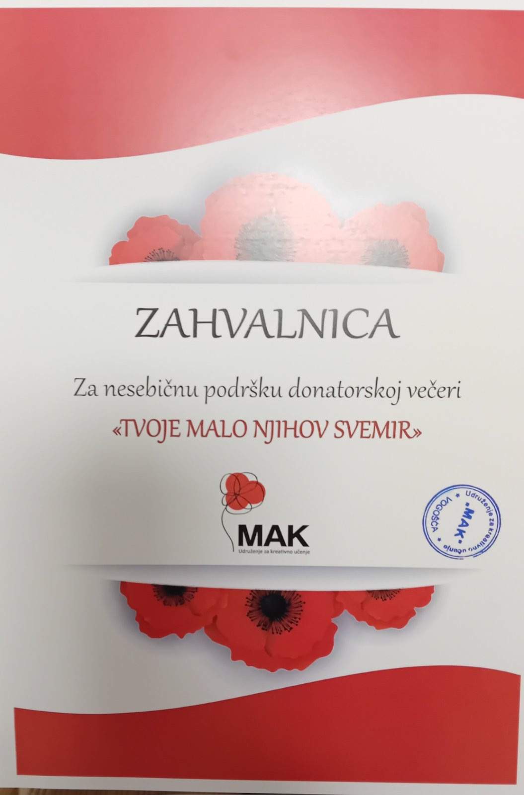 U Velikoj sali Općine Vogošća večeras je održana donatorska večer pod nazivom "Tvoje malo – njihov svemir", u organizaciji Udruženja za kreativno učenje MAK, čiji rad već duže godina podržava i Rijaset Islamske zajednice u Bosni i Hercegovini.