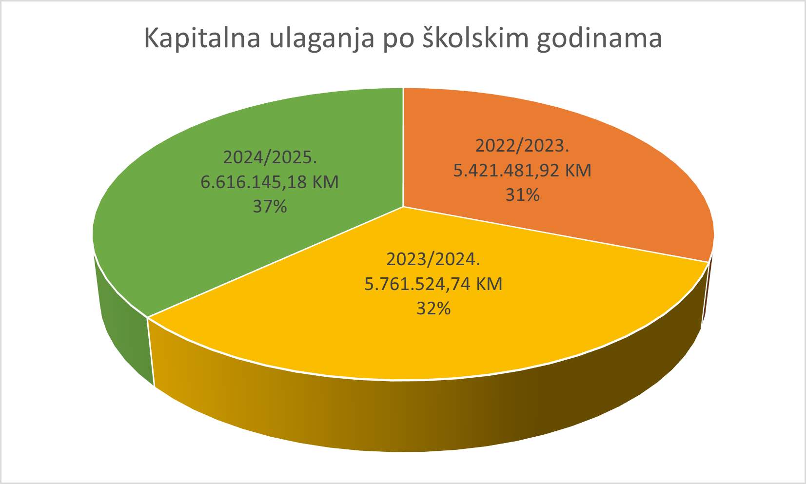Paralelno s demografskim i upisnim kretanjima, zabilježen je i kontinuiran rast kapitalnih ulaganja u osnovne i srednje škole.