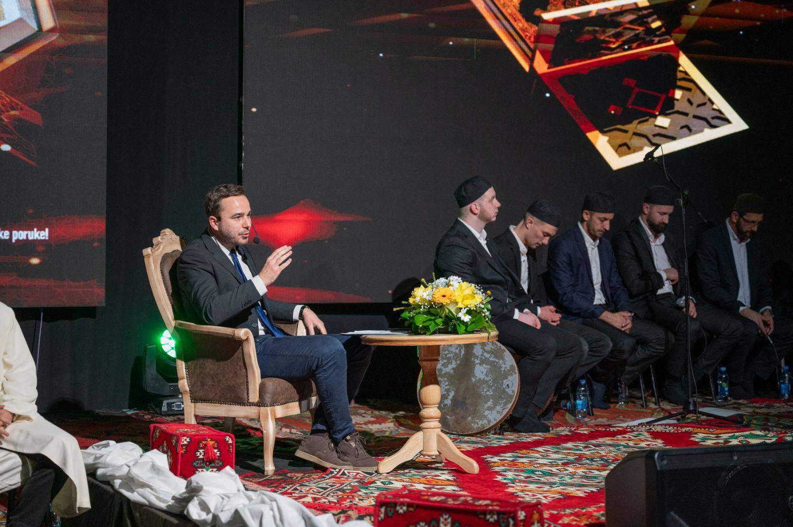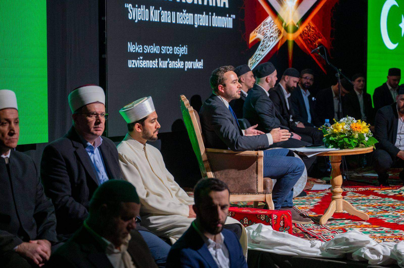 – Večeras vidimo da se Kur'an sluša s mnogo važnosti, ljubavi i posvećenosti. Pitam vas ima li na dunjaluku nešto slično da nam toliko pažnje izaziva? Jesmo li svjesni šta se tu sada dešava s nama? Jesmo li svjesni Allahove milosti koja se spušta na nas dok slušamo i učimo Kur'an. On se obraća i našem razumu i srcu – poručio je dekan Hasani.