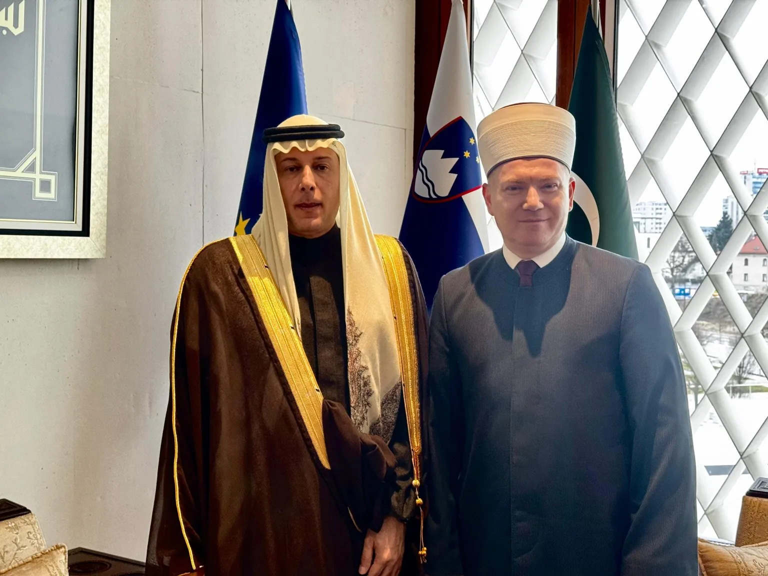 Muftija mr. Nevzet Porić, predsjednik Mešihata Islamske zajednice u Republici Sloveniji, u ponedjeljak, 19. januara 2026. godine, razgovarao je s Abdullahom Khalidom Tawlahom, ambasadorom Kraljevine Saudijske Arabije u Republici Austriji, čija diplomatska nadležnost obuhvata i Republiku Sloveniju.