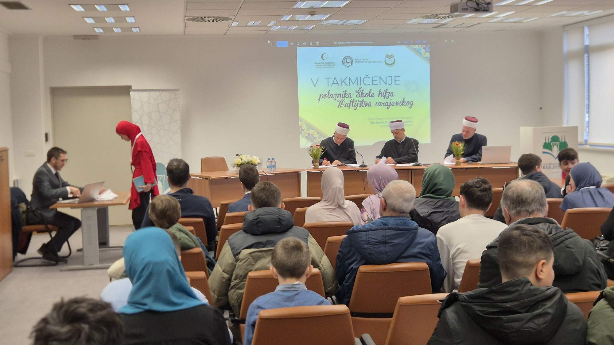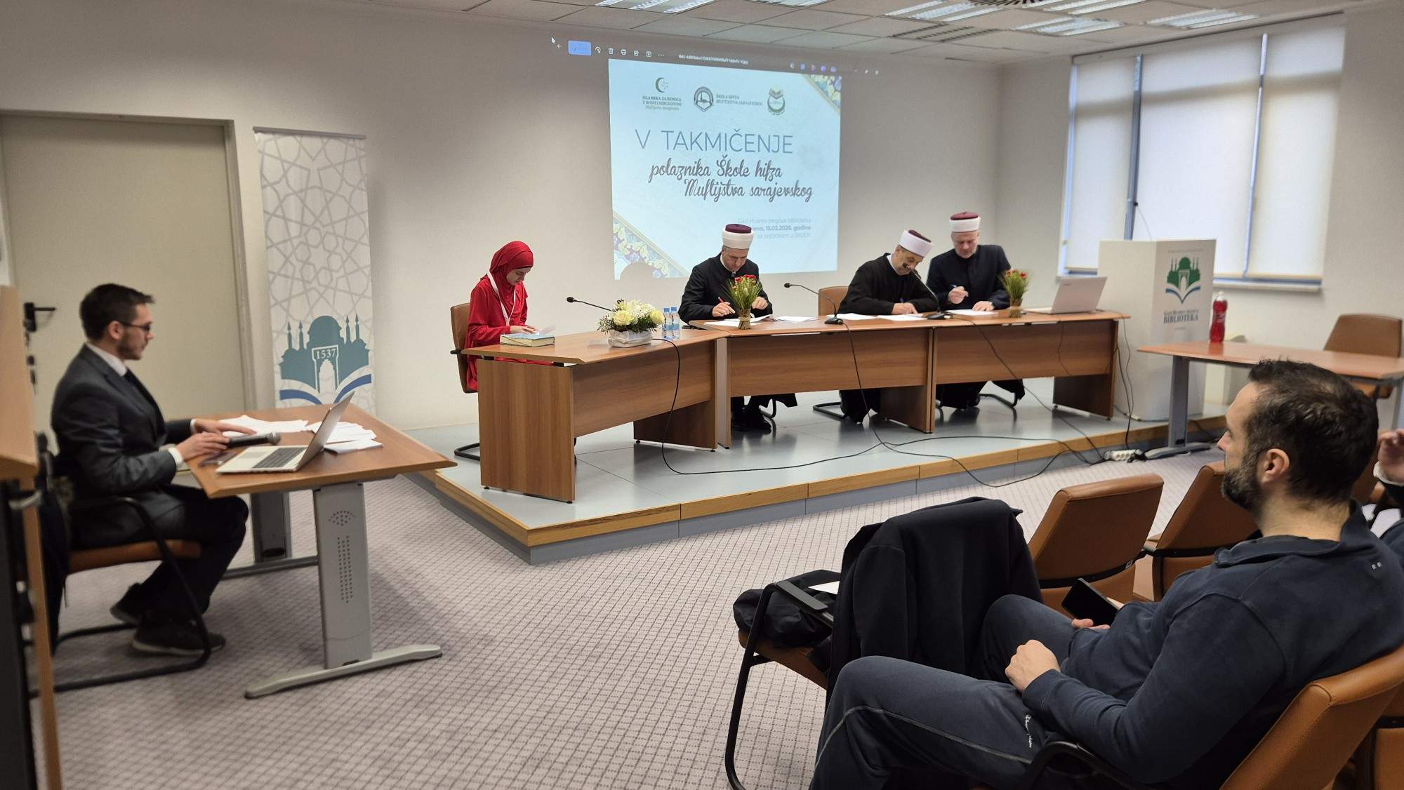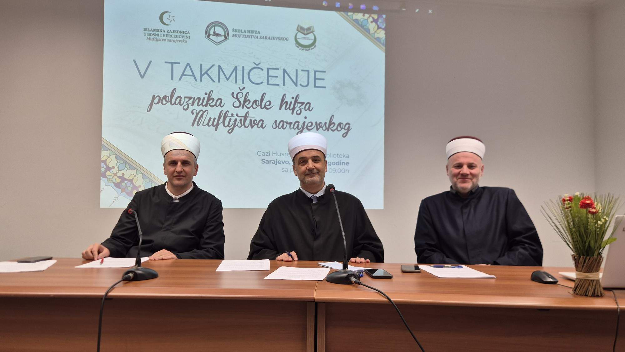 – Danas imamo dvije komisije. Prvu komisiju čine dr. Abdulaziz Drkić, dr. hafiz Maid Ibrahimović i hafiz Edin Bukva. Drugu komisiju čine hafiz Mensud Đulović, hafiz Sead Babaluk i hafiz Hikmet Džanko. Nadamo se, ako Bog da, da će današnje takmičenje proći hairli – istakao je hafiz Sadrudin-ef. Išerić.