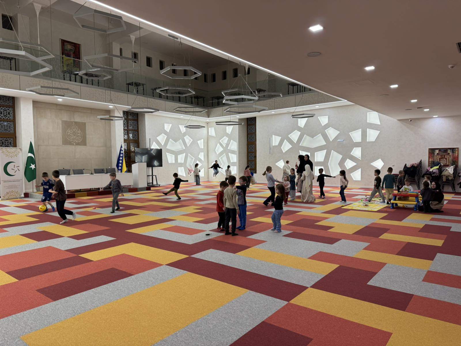 Dok odrasli klanjaju teravih-namaz, velika sala Islamskog centra "Sultan Ahmed" ispunjena je dječijom grajom.