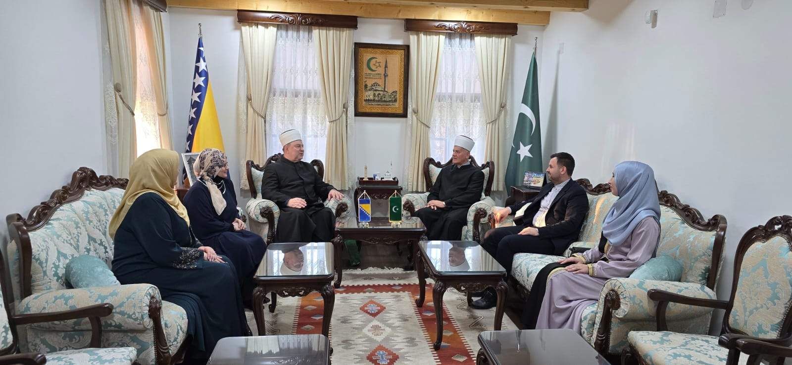 Ismail-ef. Smajlović, muftija banjalučki, sa saradnicima, dočekao je direktora Malkića u prostorijama Muftijstva.