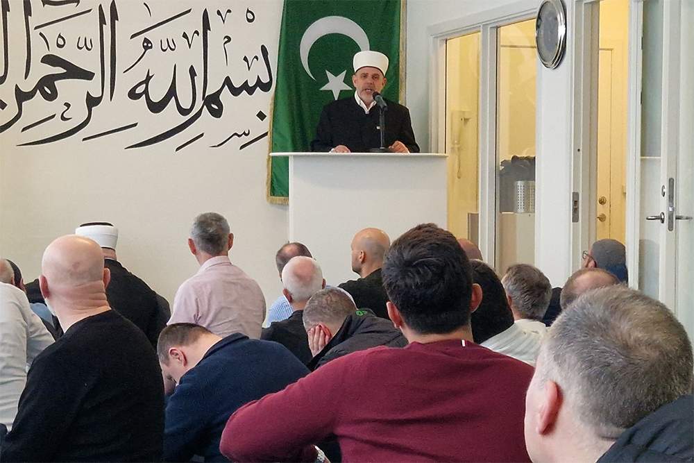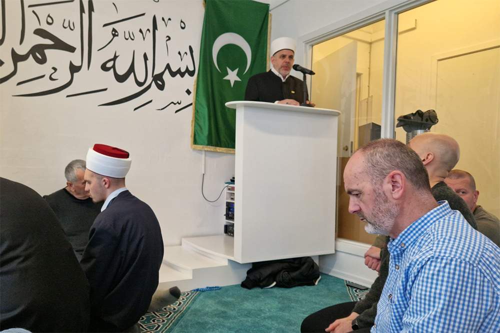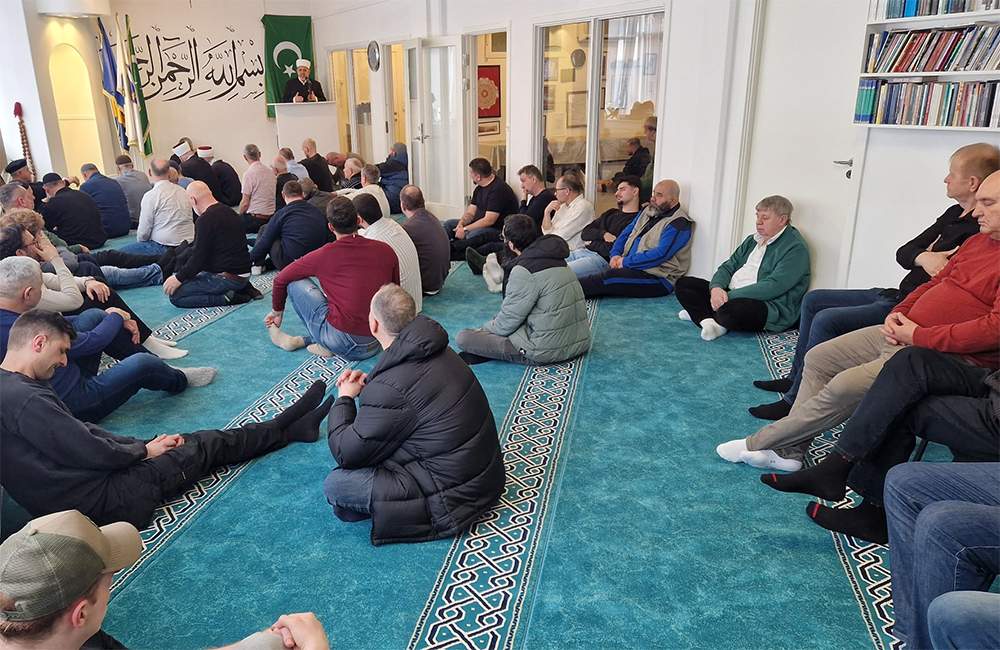 Nakon predavanja, efendija Arnaut je predvodio džuma-namaz i održao hutbu na temu zekata i sadekatul-fitra. U svom obraćanju podsjetio je na težak period nakon agresije na Bosnu i Hercegovinu, ističući da je Islamska zajednica u BiH u periodu 1992–1995. godine ostala bez 1.700 porušenih objekata, više od 350 ubijenih imama te više od 46 zatvorenih medresa.