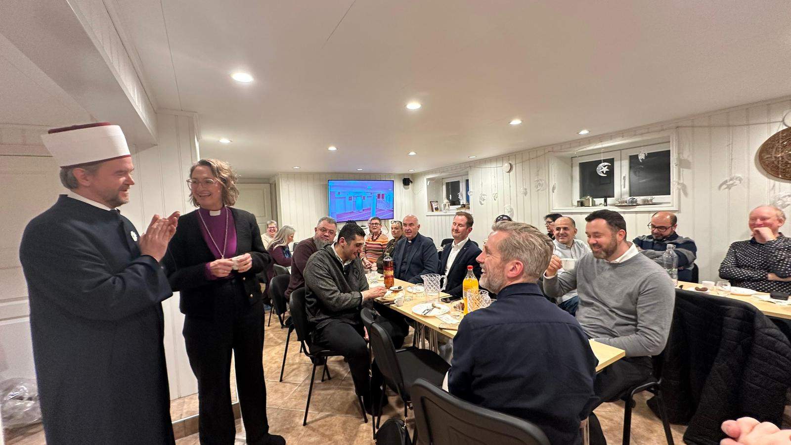 U norveškom Sarpsborgu je sinoć, 17. februara 2026., u organizaciji Dialogforuma – Foruma za dijalog, održan međureligijski iftar kojem su prisustvovali predstavnici vjerskih zajednica, političkog i društvenog života, među kojima i norveški biskupica Kari Mangrud Alvsvåg, muftija za Zapadnu Europu Senaid-ef. Kobilica, te gradonačelnik Sarpsborga Magnus Arnesen.
