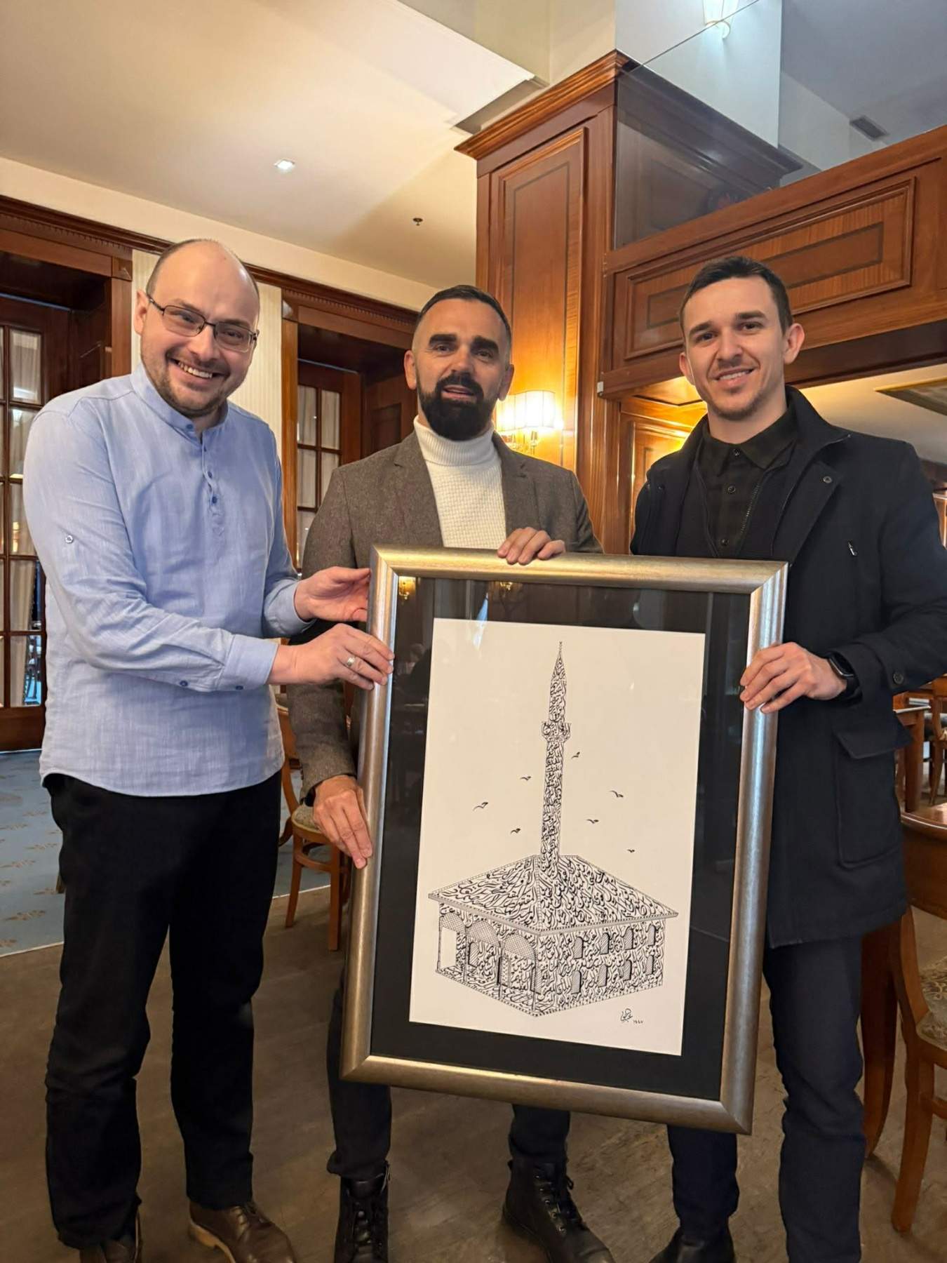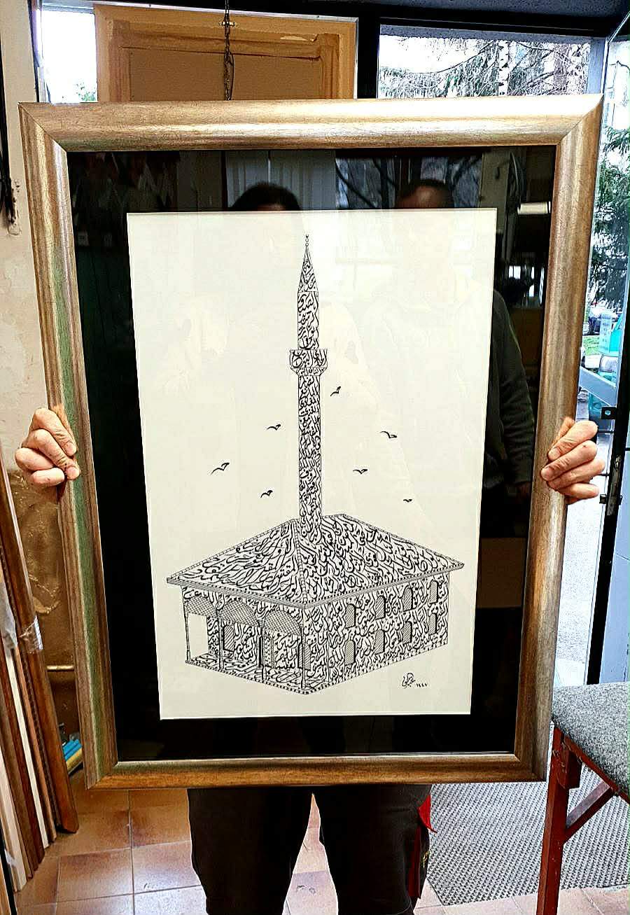Kaligraf Abdulhak Hadžimejlić naslikao levhu u obliku Čaršijske džamije u Bosanskoj Dubici