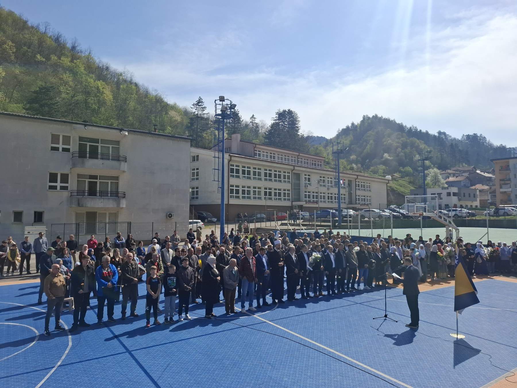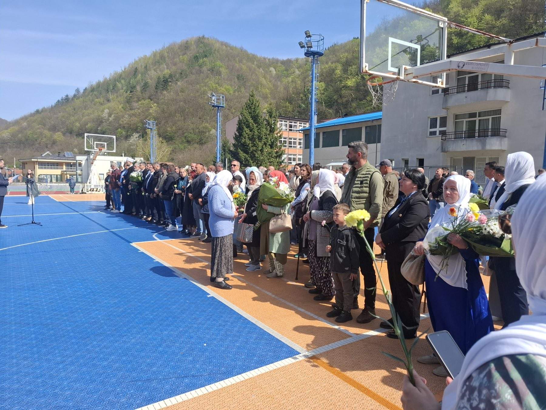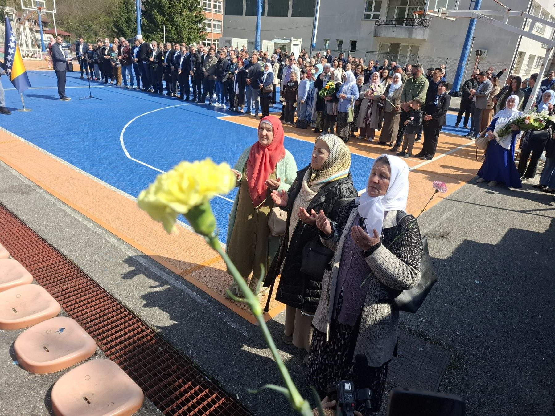 U Srebrenici je obilježena 33. godišnjica masakra na igralištima ispred osnovne i srednje škole, gdje je, nakon granatiranja s položaja Vojske RS-a, poginulo 105 osoba. Porodice žrtava i brojni zvaničnici odali su počast ubijenima polaganjem cvijeća na ogradu igrališta.