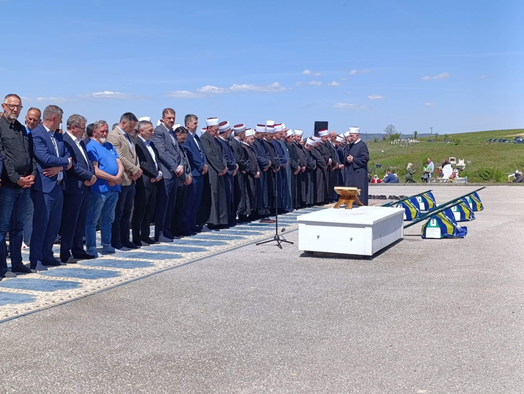 Nakon vjerskog programa i obavljenog podne-namaza, dženazu za četiri identifikovane i dvije NN osobe predvodio je muftija tuzlanski, dr. Vahid-ef. Fazlović.