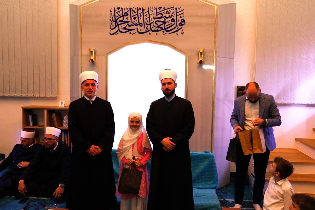 – Iznimno sam sretan što smo uspjeli na ovakav način krunisati još jednu uspješnu godinu naše Škole hifza. Od 11 polaznika, devet ih je večeras prisutno i gotovo svi su pri kraju džuza Amme, a polaznica Nudžejma Hodžić naučila je cijeli džuz i danas ćemo joj dodijeliti šehadetnamu i prigodan poklon. Koristim priliku da se zahvalim roditeljima na odličnoj saradnji, a posebna mi je čast što je večeras s nama muftija bihaćki hafiz Mehmed-ef. Kudić – istakao je Tričić.
